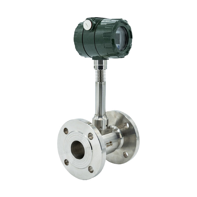 压电式涡街流量计:应力式涡街流量计是速度式流量计的一种,它以卡门涡街理论为基础,采用压电晶体检测,流体通过管道内三角柱时所产生的旋涡频率,从而测量出流体的流量。结构简单牢固,无运动磨损部件,使用寿命长,测量精度高,量程宽,阻力损失小。